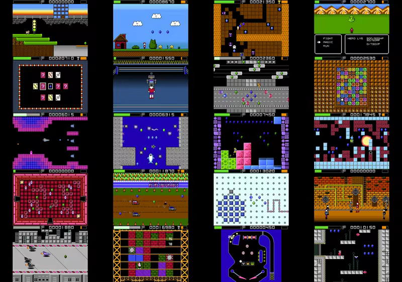 • Classic 8bit Feels: All games utilize the classic NES palette with music composed using FamiStudio to get that classic 8bit feel.