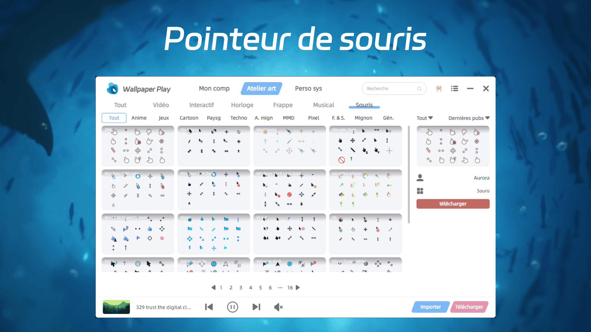 Curseurs de souris : Plus de 300 styles de curseurs de souris sont disponibles pour le changement, allant des styles mignons et adorables aux styles technologiques et impressionnants, répondant aux différents besoins esthétiques et rendant les opérations de la souris plus personnalisées.