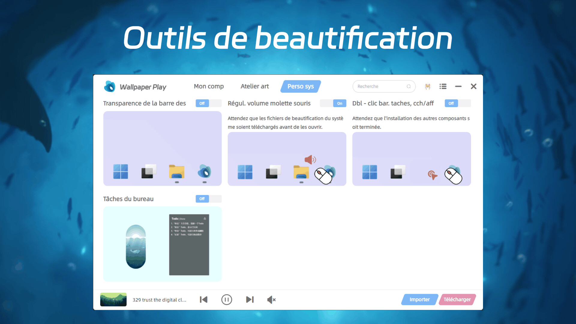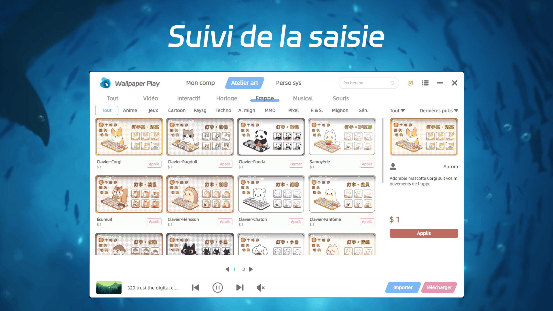 【WallpaperPlay】 Un outil puissant de beautification du bureau qui regroupe des fonds d'écran dynamiques, des horloges de bureau, des spectres musicaux, une fonction de suivi de frappe et des curseurs de souris. Pour la beautification du bureau, celui-ci suffit! O(∩_∩)O~