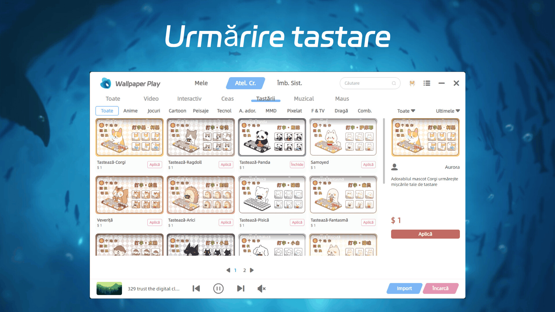 Urmărire a tastării: Funcția de tastare cu animalele dragute este foarte amuzantă. Când utilizatorul tastează pe tastatură, animalul dragut de pe ecran tastează, de asemenea, aceleași taste simultan, ca și cum ai avea un prieten care te ajută să tastezi, adăugând plăcere la tastarea zilnică.