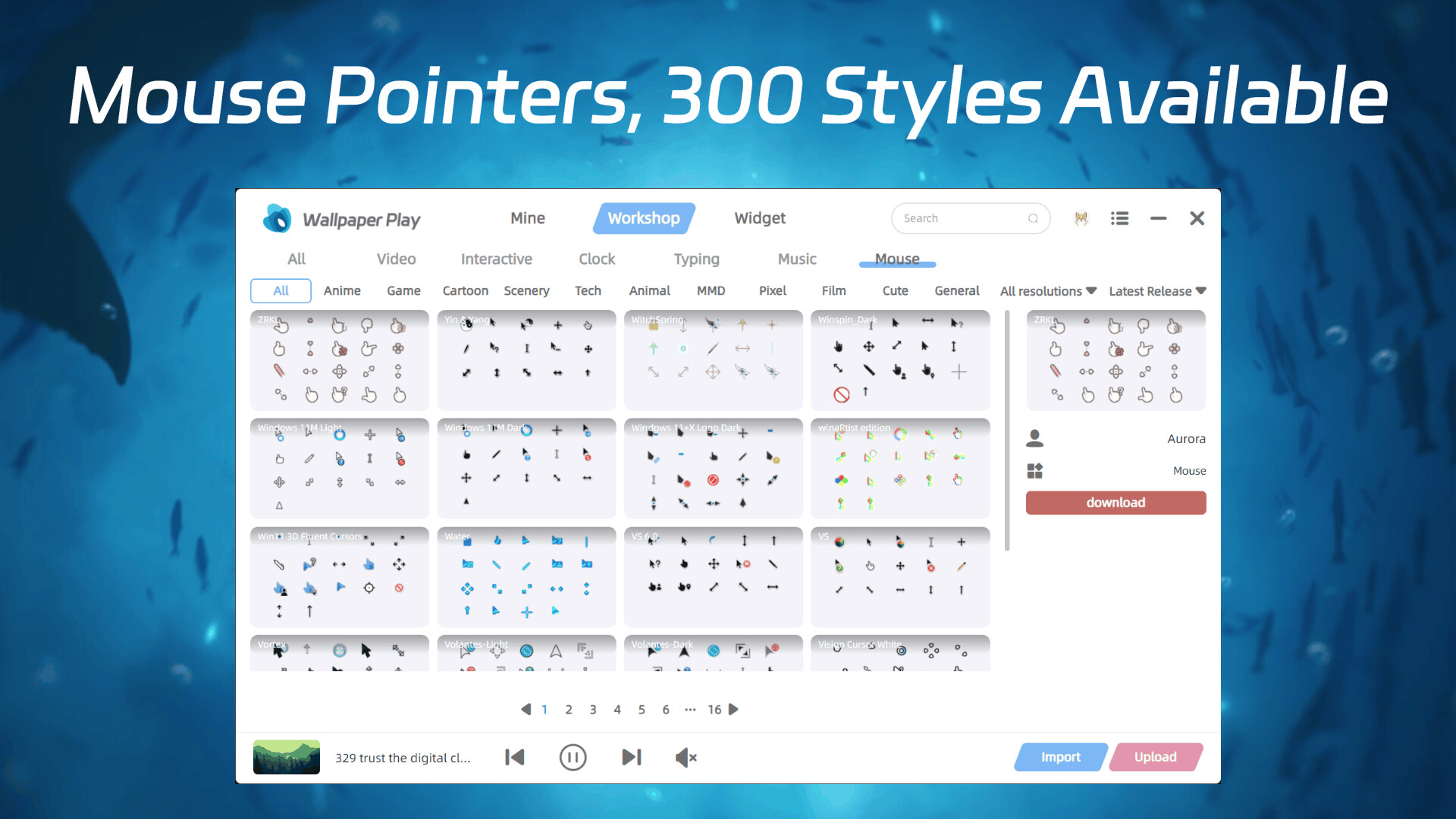Pointer mouse: Menawarkan lebih dari 300 gaya pointer mouse untuk diganti, dari gaya imut dan manis hingga gaya teknologi yang keren, memenuhi kebutuhan estetika yang berbeda, dan membuat operasi mouse lebih bersifat pribadi.