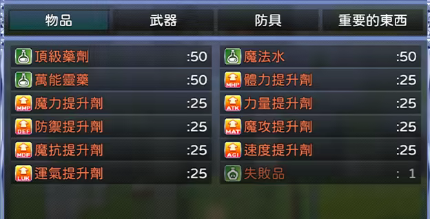 每個物品皆有不同的提升能力,除了可以直接使用外,