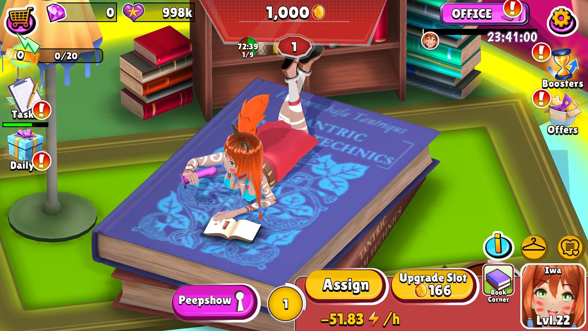 By flirting with the girls, and learning about their needs and personalities, giving them gifts and taking them on dates, you earn their trust, unlocking you new H-scenes, the animations in them becoming available for you during the erotic shows, to be used on any and all of your girls.