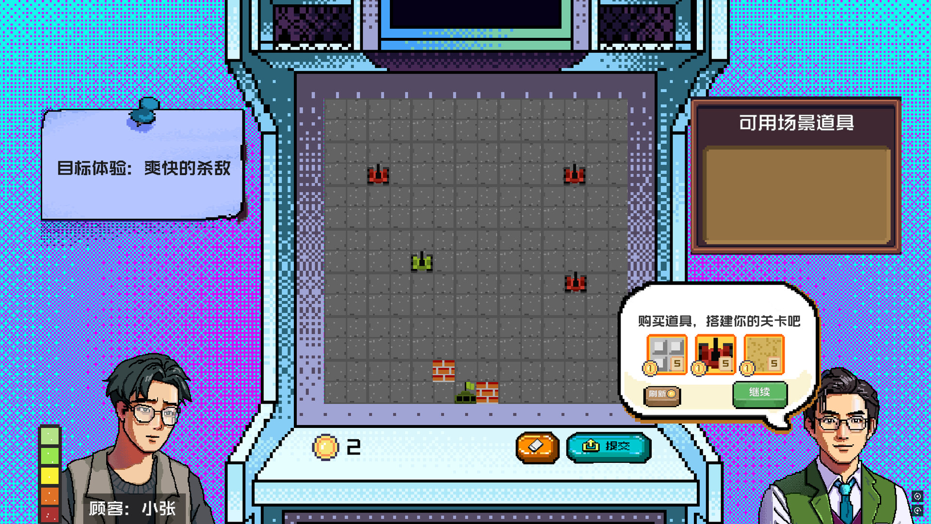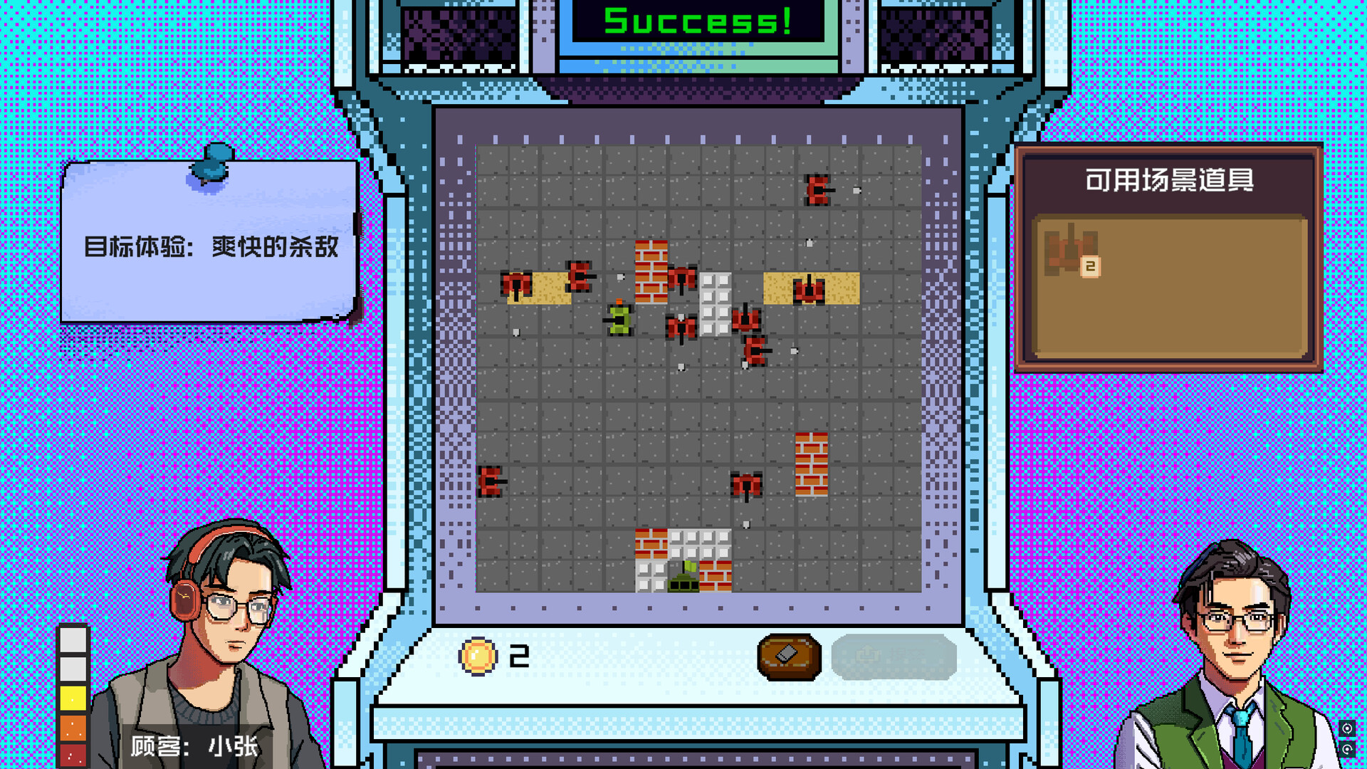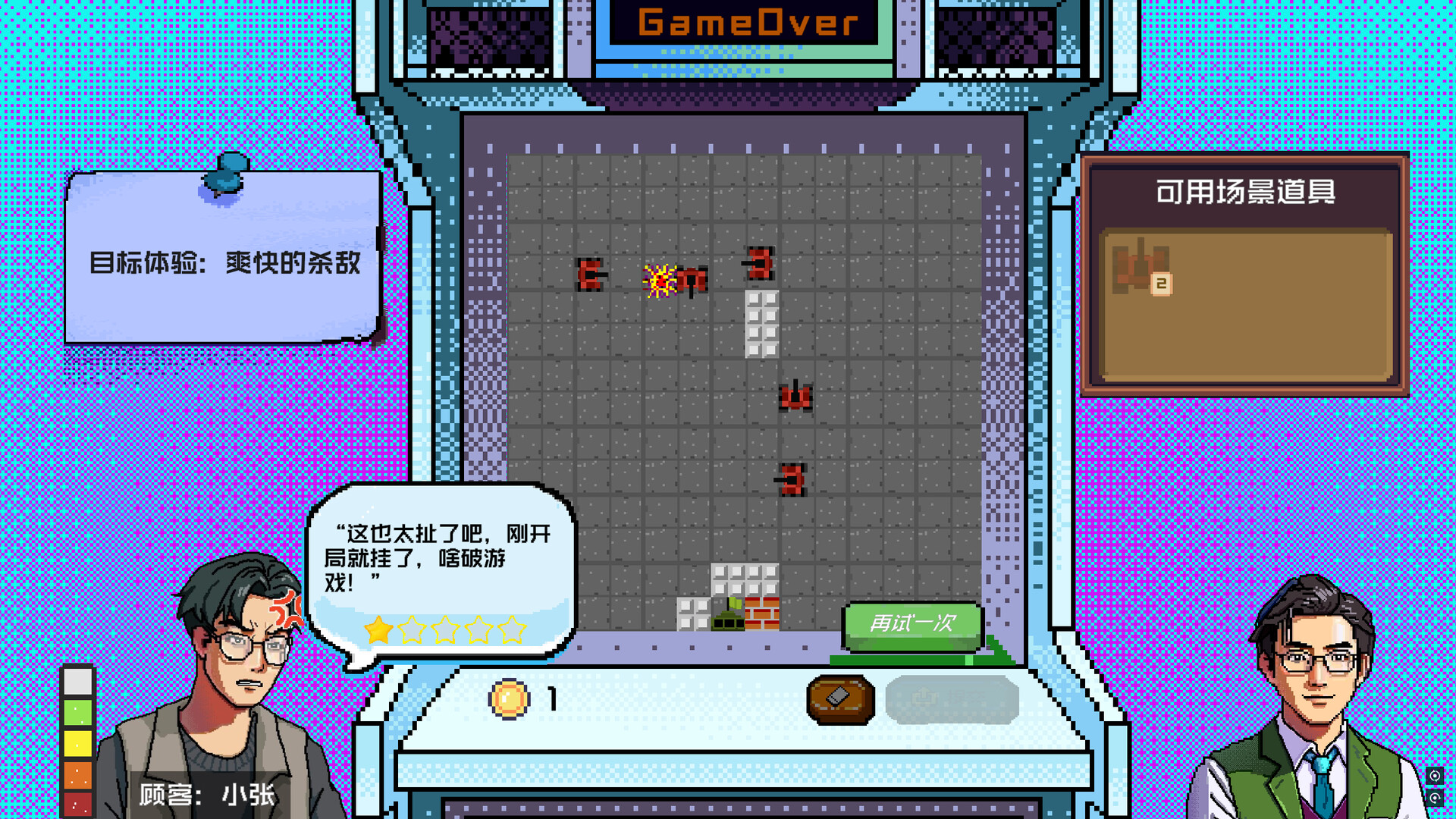 An AI-driven creative game. As an arcade workshop clerk, you'll face AI customers with diverse demands. Your task is to modify classic games , adjust game levels to meet customers' needs, and with the manager's help, expand and strengthen the arcade workshop.