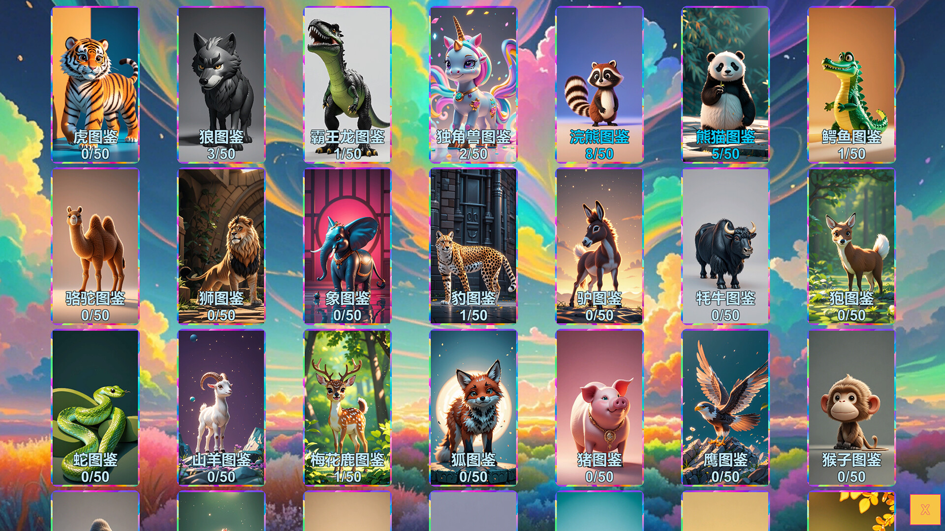 一款3D卡牌的动物合成游戏,与其他动物战斗胜利后可以获得奇异蛋,孵化完成获得奇异动物。
