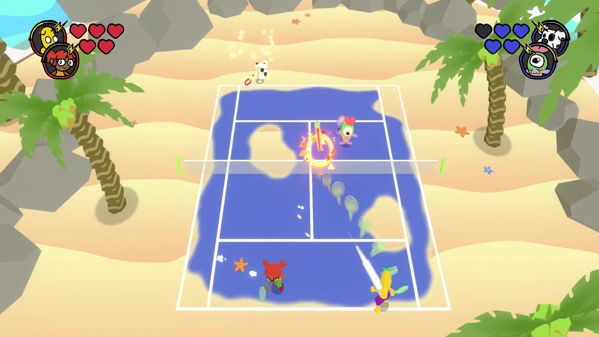 In Quacolé Tennis, you’ll discover that there are no limits for those who want to become the best. From the depths of the sea to above the clouds, every place is perfect for tennis matches! Prove your worth on the most unusual courts in friendly matches for up to 4 players or beat all the challenges in the single-player and 2-player cooperative campaigns!