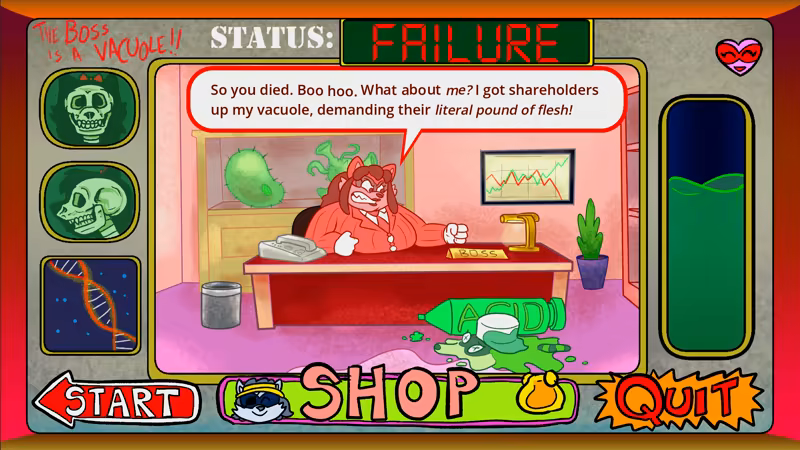 GutBuster is a classic arcade-style shooter, with hand-drawn animations and satirical comedy about corporate greed, the digestive system, and erotic gluttony. Controls are simple: just run, while the gun shoots upwards automatically! Run and use your dodge-roll ability to avoid the food targets as you blast, so you don't get crushed! This is a challenging, yet casual game where you can continue as many times as you want. Accessibility options are available if you want to make it easier, or just want to see the story.
