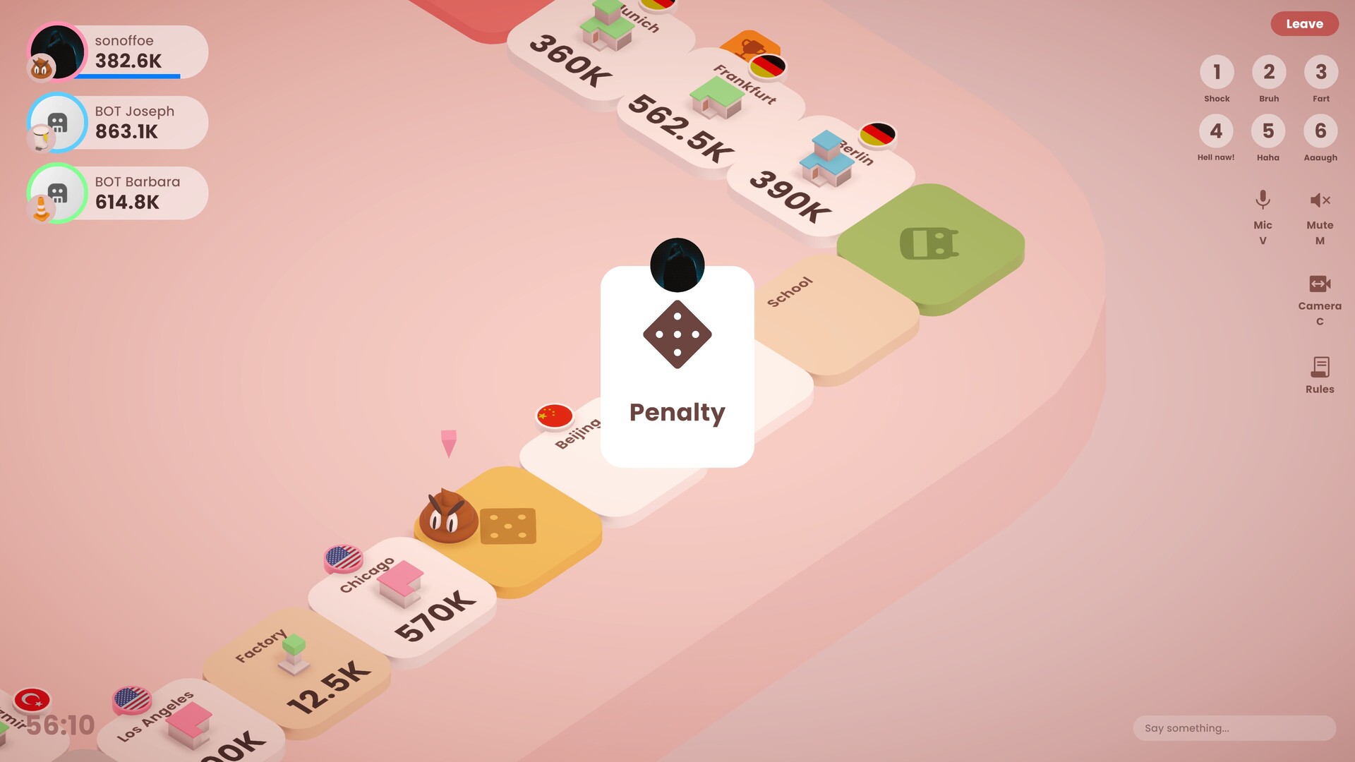 Step into a world of strategy, luck, and endless fun in this fast-paced multiplayer board game! Compete against friends or players from around the globe as you buy, upgrade, and dominate unique locations on the board. With quirky characters, hilarious interactions, and unexpected twists, every match is a fresh challenge.