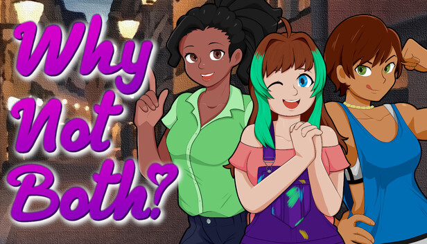 Why Not Both? is a kinetic visual novel set in an optimistic solarpunk future, blending emotional storytelling, romantic tension, and positive polyamorous representation. The story follows Rio, Jen, and Aspen during their sophomore year at Silver Sire, a thriving academic institution. Amid academic pursuits, emotional struggles, and evolving relationships, they must confront the complexities of identity, desire, and love. Why Not Both? invites readers into a world of discovery, connection, and the courage to follow one's heart.