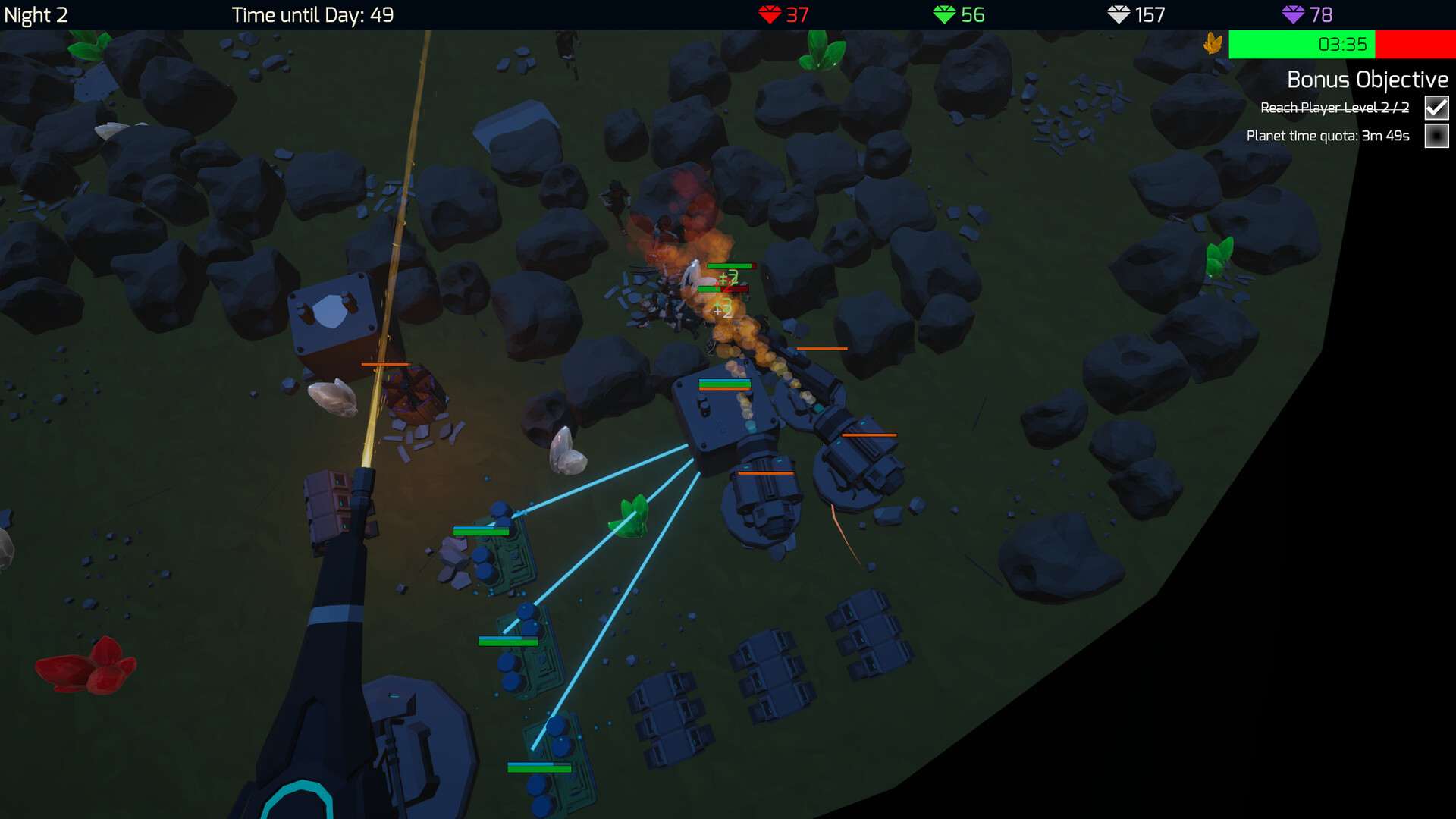 Every successful mission rewards starlight. Spend it on permanent upgrades, mastering abilities, and stronger buildings to take on more dangerous planets. Find your strategy, pick the right upgrades, and try to stay one step ahead of escalating threats.