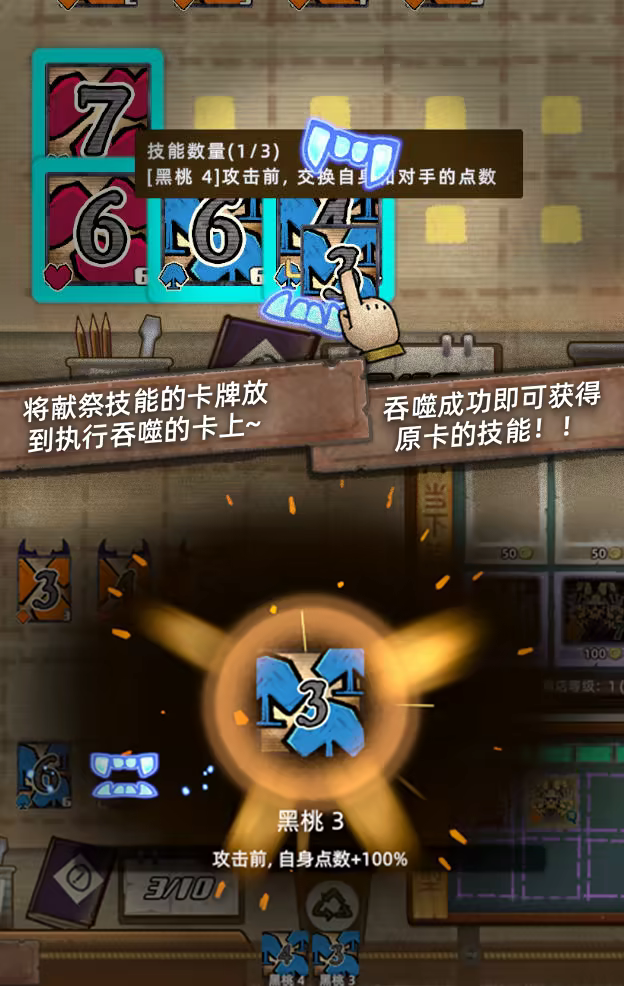 Each poker card has skills with different mechanisms, and you can also buy poker cards to devour. Successful devouring increases the number of skills.