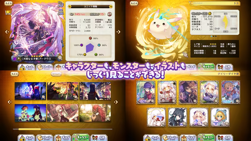 Enjoy the charming characters, monsters, and still illustrations that appear in the stories anytime with the gallery feature!