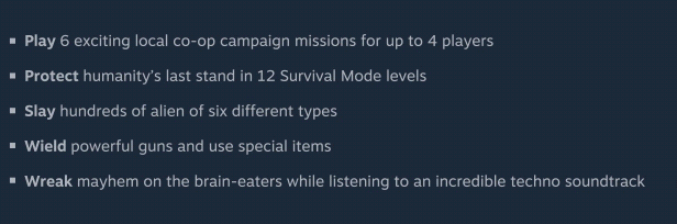 “It came from space and ate our brains is a solid couch co-op shooter.”