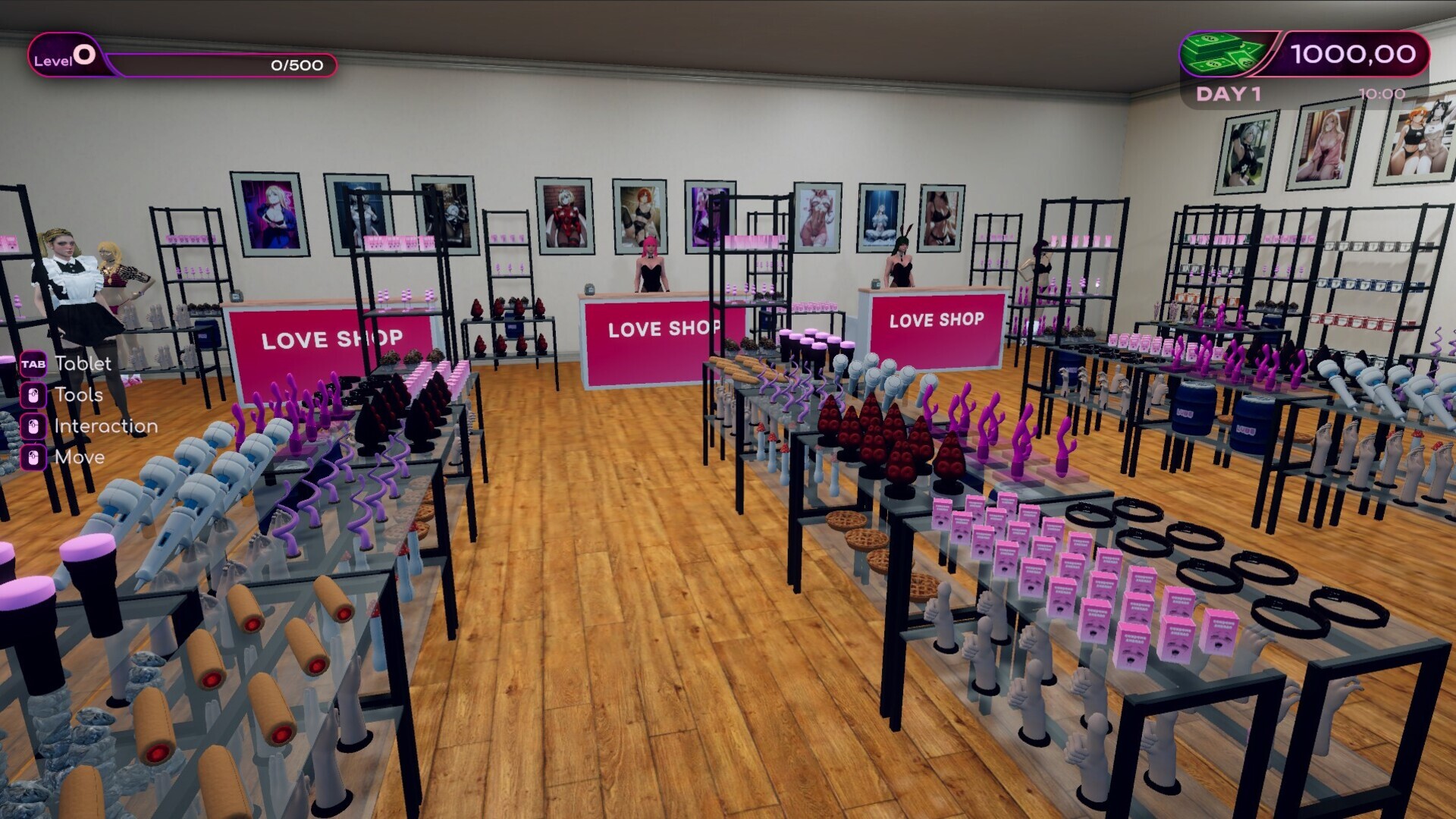 • Run your own love shop – Manage a fully functional store with 30+ products, 4 types of displays, mannequins, and posters.