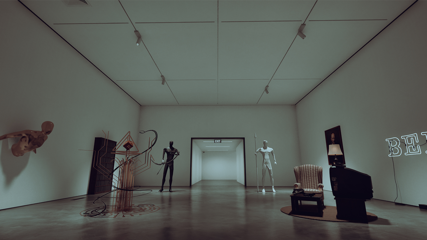 You find yourself alone in a modern art museum. White walls, black floors, and meticulously arranged exhibits. Everything seems orderly… yet deeply unsettling.
