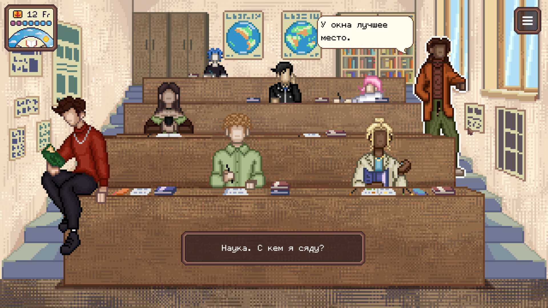 Ты в этом учреждении за знаниями (ведь так?). Тебя ждут мини-игры по различным предметам, ежедневная учебная рутина, домашние задания и, конечно же, стипендия, чтобы тебе не захотелось бросить это дело на первом же курсе.