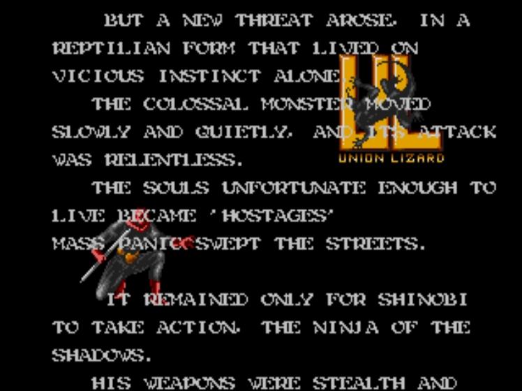 New York City has fallen into the hands of a group of ninja warriors called Union Lizard, and they have taken people hostage. Kato, Joe Musashi’s former martial arts student, has been mortally wounded while investigating Union Lizard, leaving his faithful dog Yamato. Joe Musashi swore to avenge Kato’s death, and headed for New York.