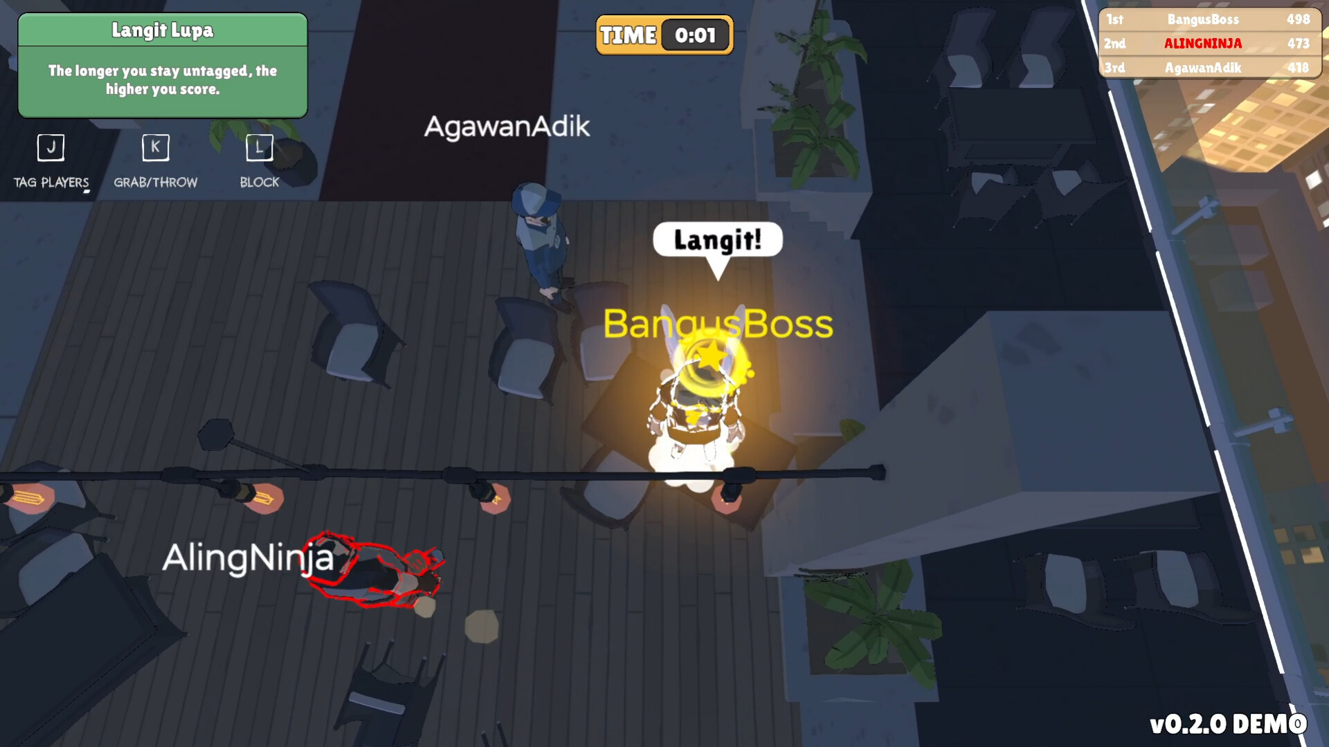 Langit Lupa: Fast-paced multiplayer chase game set in an office environment, inspired by a classic Filipino childhood game, where you leap across desks and chairs to avoid the floor and outmaneuver your coworkers.