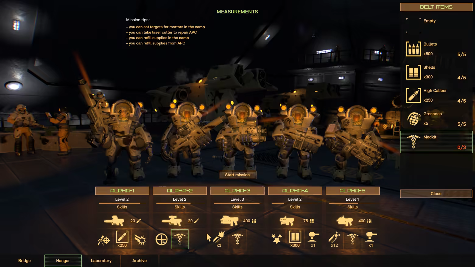 Select weapon and equipment for each trooper based on the needs of the mission and the soldier's skills.