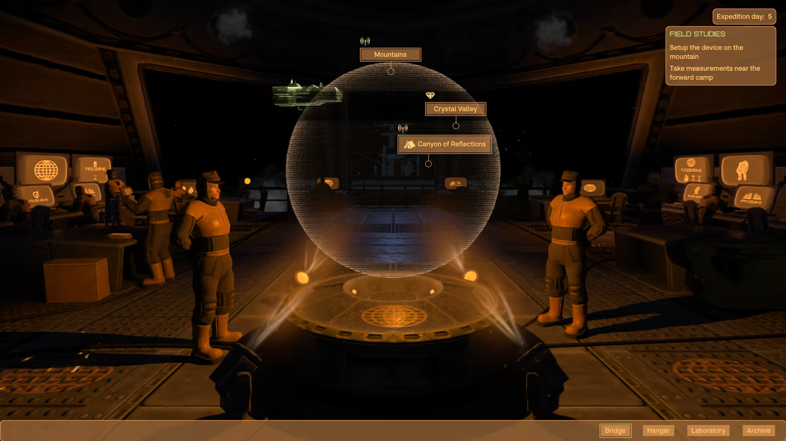 Choose the missions that the landing party will go on - completing them will allow you to gain experience for your troopers and resources for research, as well as advance the plot.