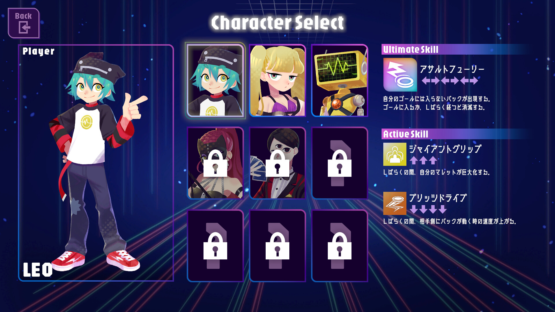 ※ In the demo version, you can play CPU battles using two characters, LEO and ANNA.