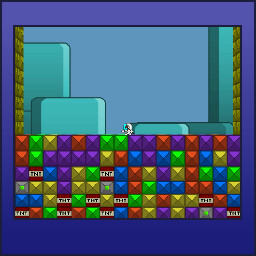 In Shovelwares classic style gameplay, Blocks will fall when a space has been opened up underneath them. But they also cling to other blocks of the same colour so plan your route and build stable mineshafts through the level.