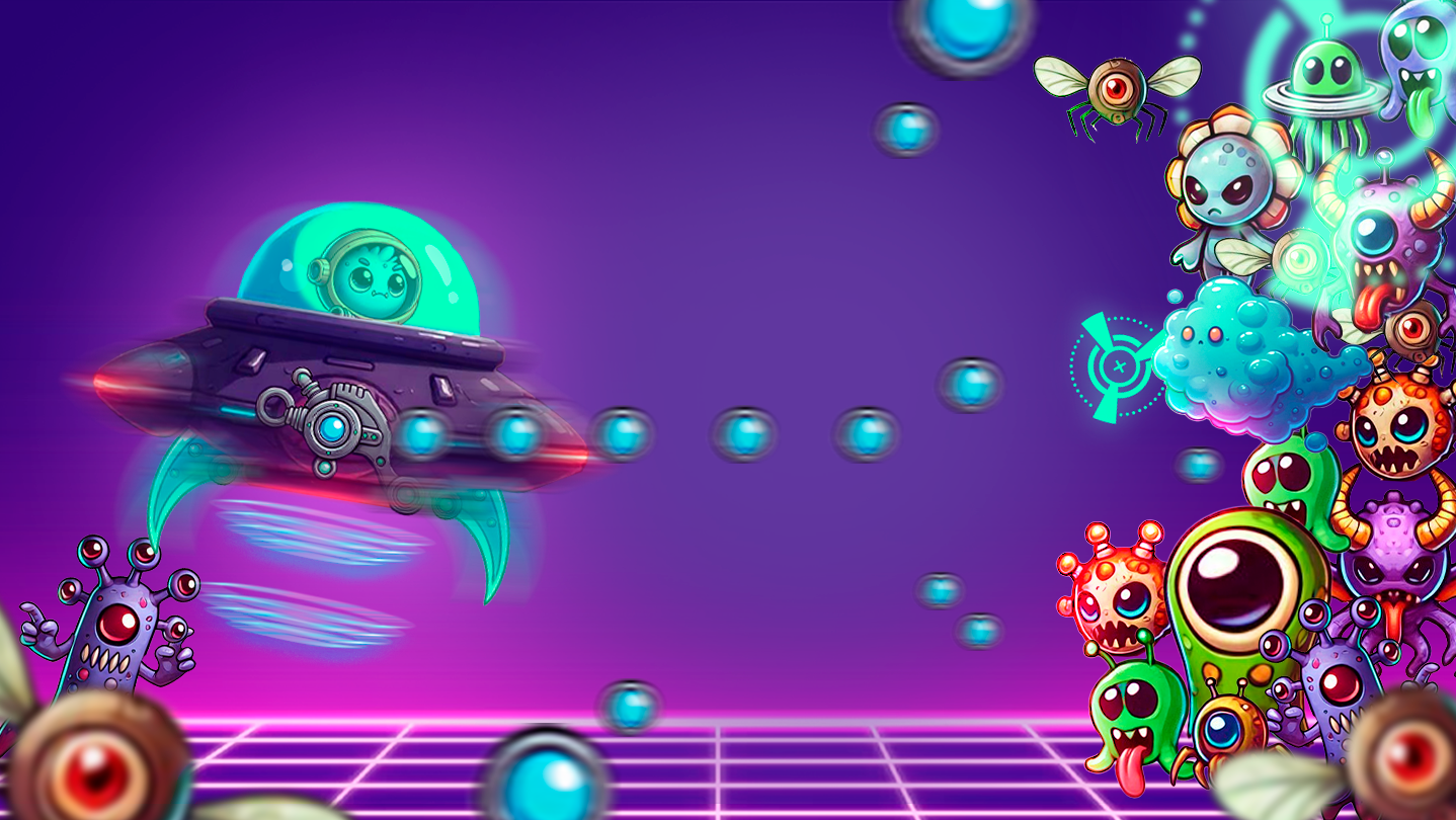 Astro Defender features art direction powered by Artificial Intelligence, delivering stunning visuals and unique environments. Every detail is crafted to provide an immersive experience, blending human creativity with cutting-edge technology to bring the universe of Zytherion to life.
