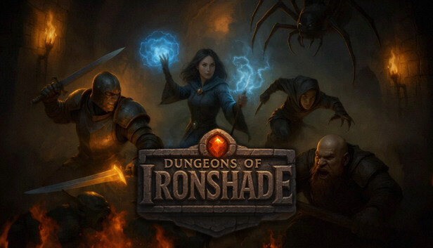 Dive into the dark depths of Dungeons of Ironshade, a gripping dungeon crawler that sends you on an rescue mission. You lead a party of four brave adventurers through the labyrinthine corridors of an ancient dungeon. Each character belongs to one of four unique classes: Warrior, Paladin, Rogue, or Mage.