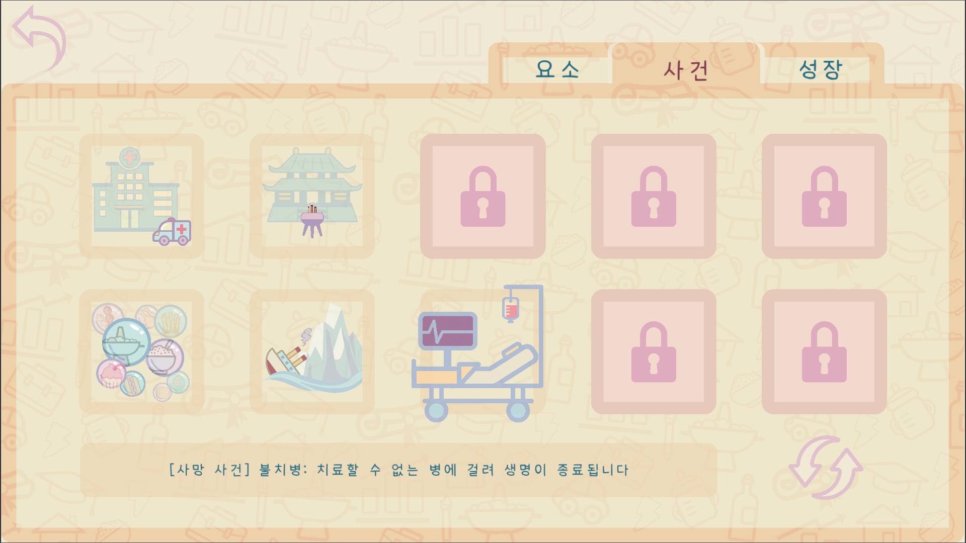 • 인생에서 마주하는 17가지 요소, 10가지 일상 이벤트 및 사망 이벤트를 수집하고, 성장 로드맵을 완성