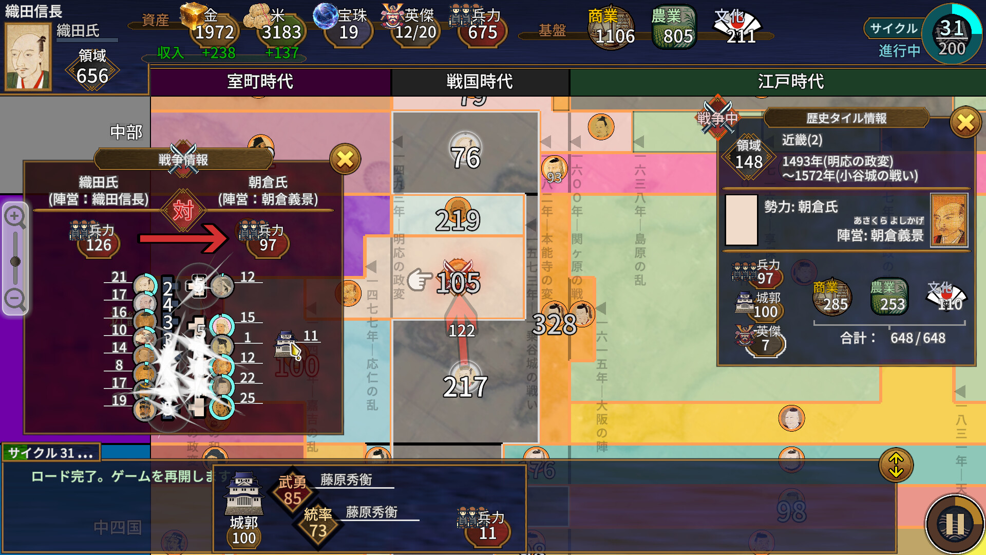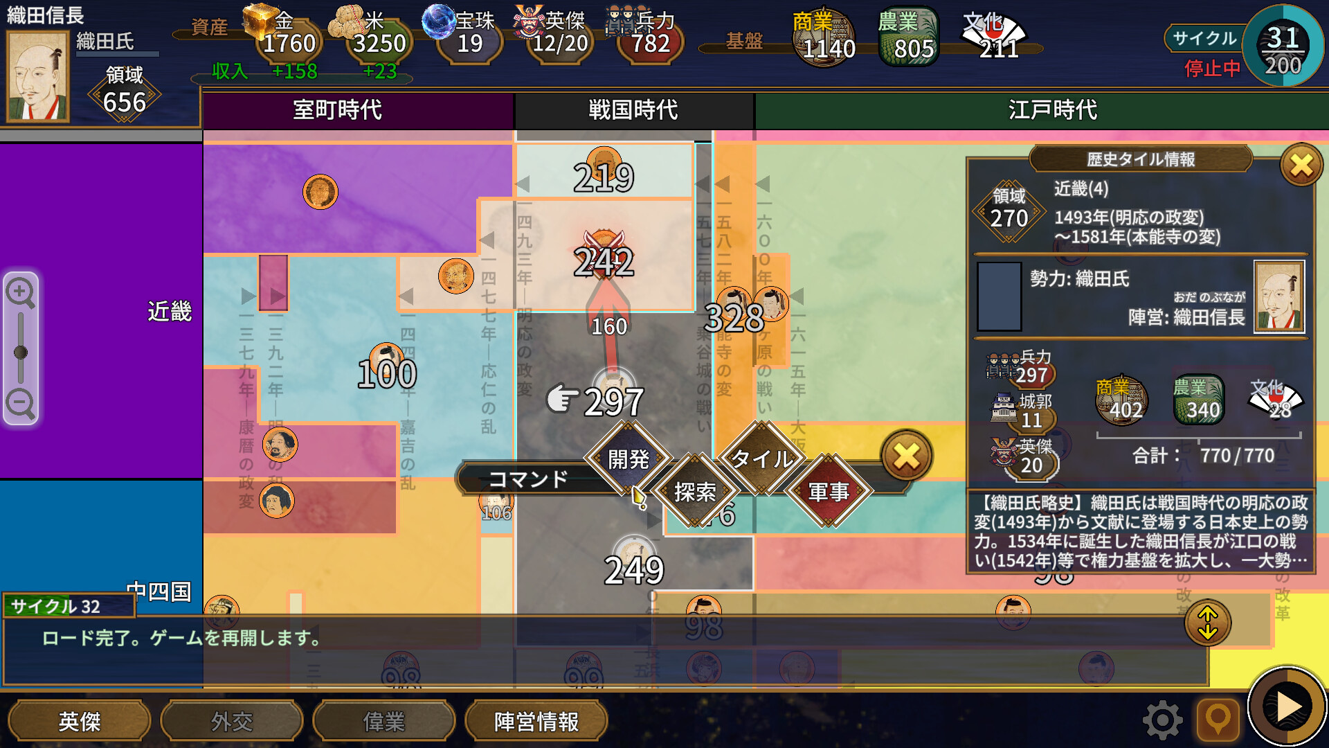 • 年表を支配:他勢力に攻め込み、自勢力の範囲を拡大。日本史を統一しましょう!