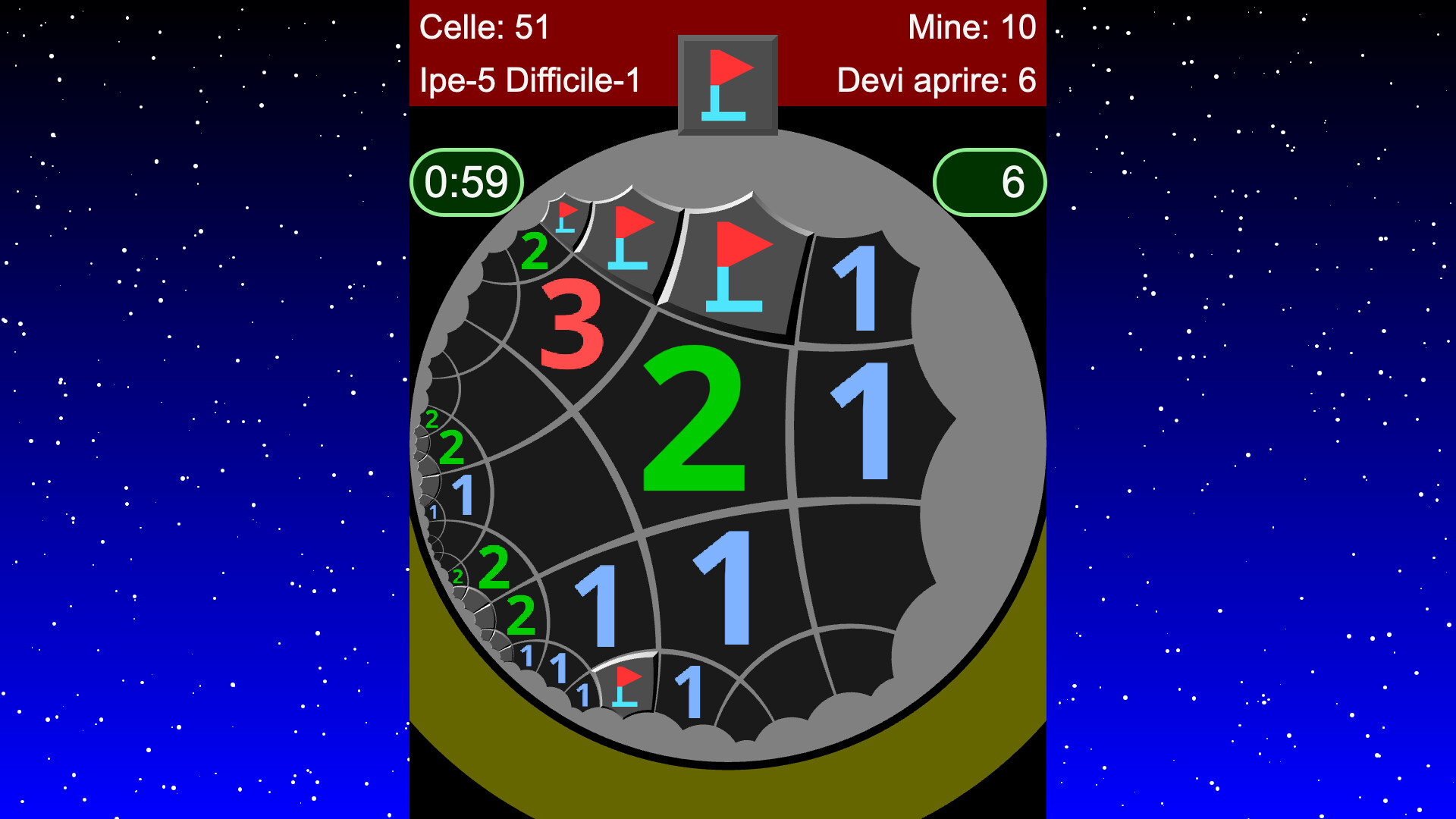- Il numero di mine può essere impostato in modalità personalizzata.