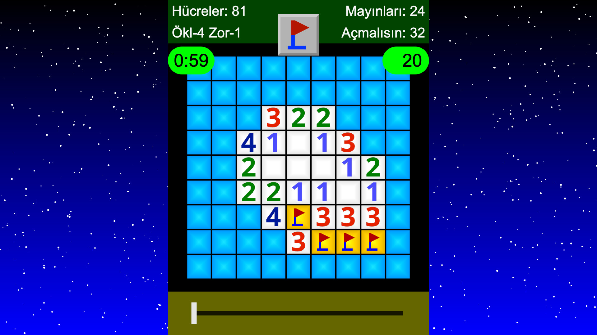 Bu, tahmin yapmadan mantıksal olarak çözülebilen, Öklid dışı geometrik bir mayın tarlası oyunudur.