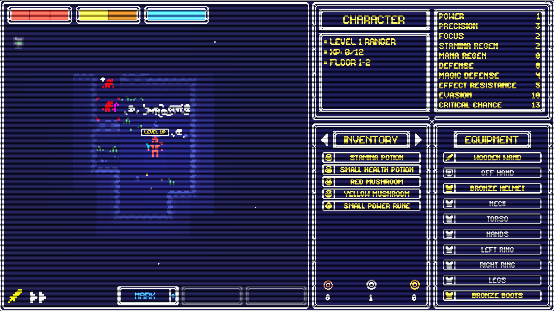 Deep Down Below is a dungeon-crawling strategy roguelike where you choose your class and fight your way home, leveling up your character and looting items along the way to progress deeper and deeper!