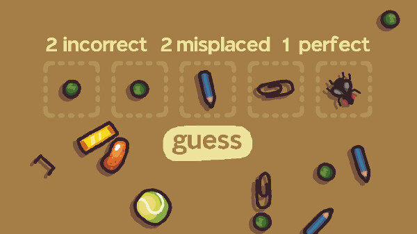 Each guess you make, information will be revealed about what you got right. By combining divide-and-conquer, with process-of-elimination, you should be able to quickly figure out the answer. Each round, you'll get a new selection of items to play with and a new colour palette to keep things interesting.