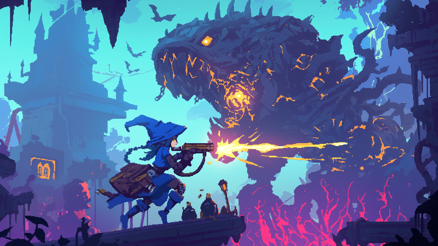 Pixel-style × side-scrolling shooter × Roguelike × vertical adventure