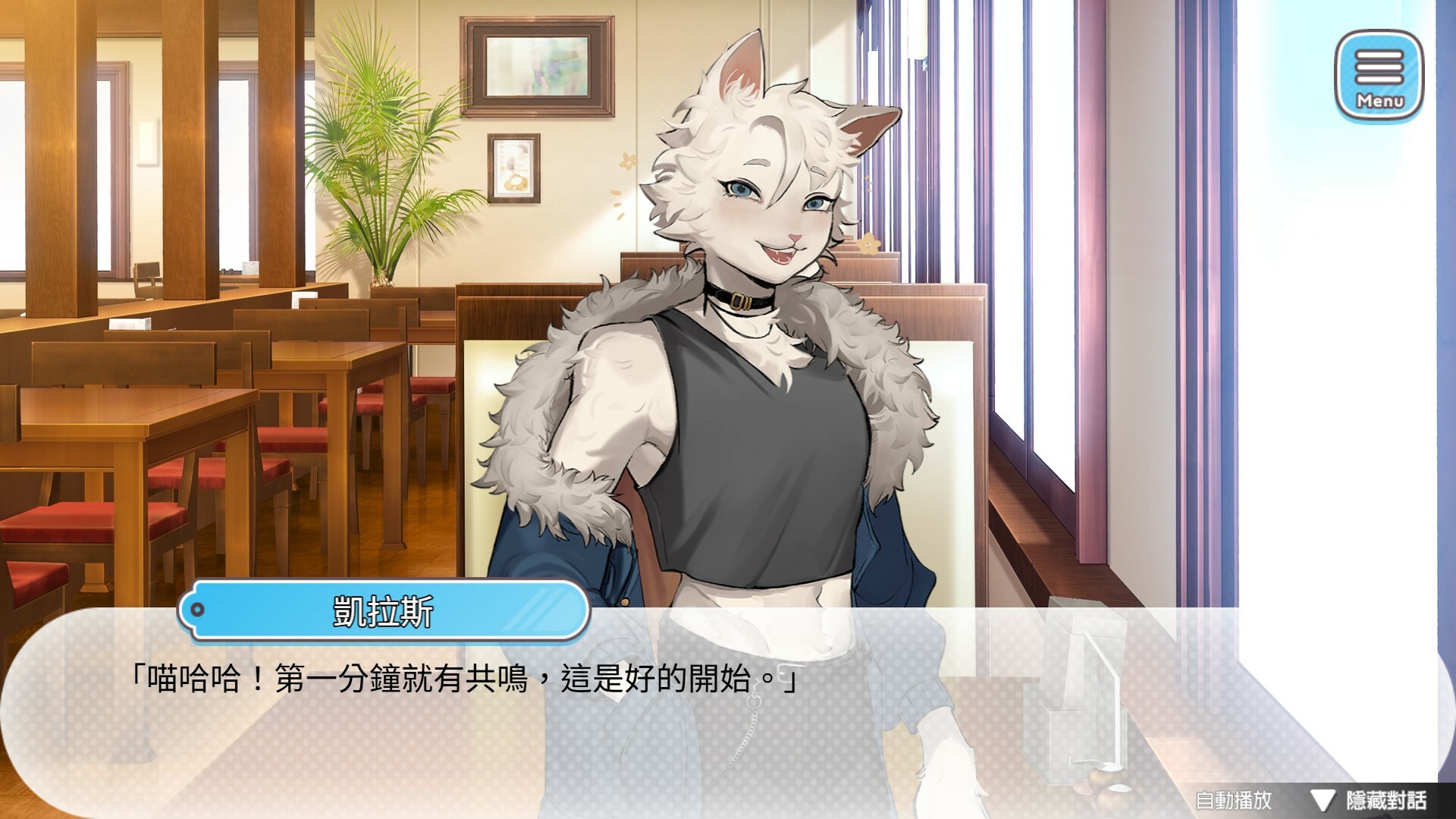 "Players control the protagonist, Bane, as he interacts with the guests of 'Blueberry Chewbit,' observes each person's state and preferences, and makes corresponding choices to pursue the one he likes!"