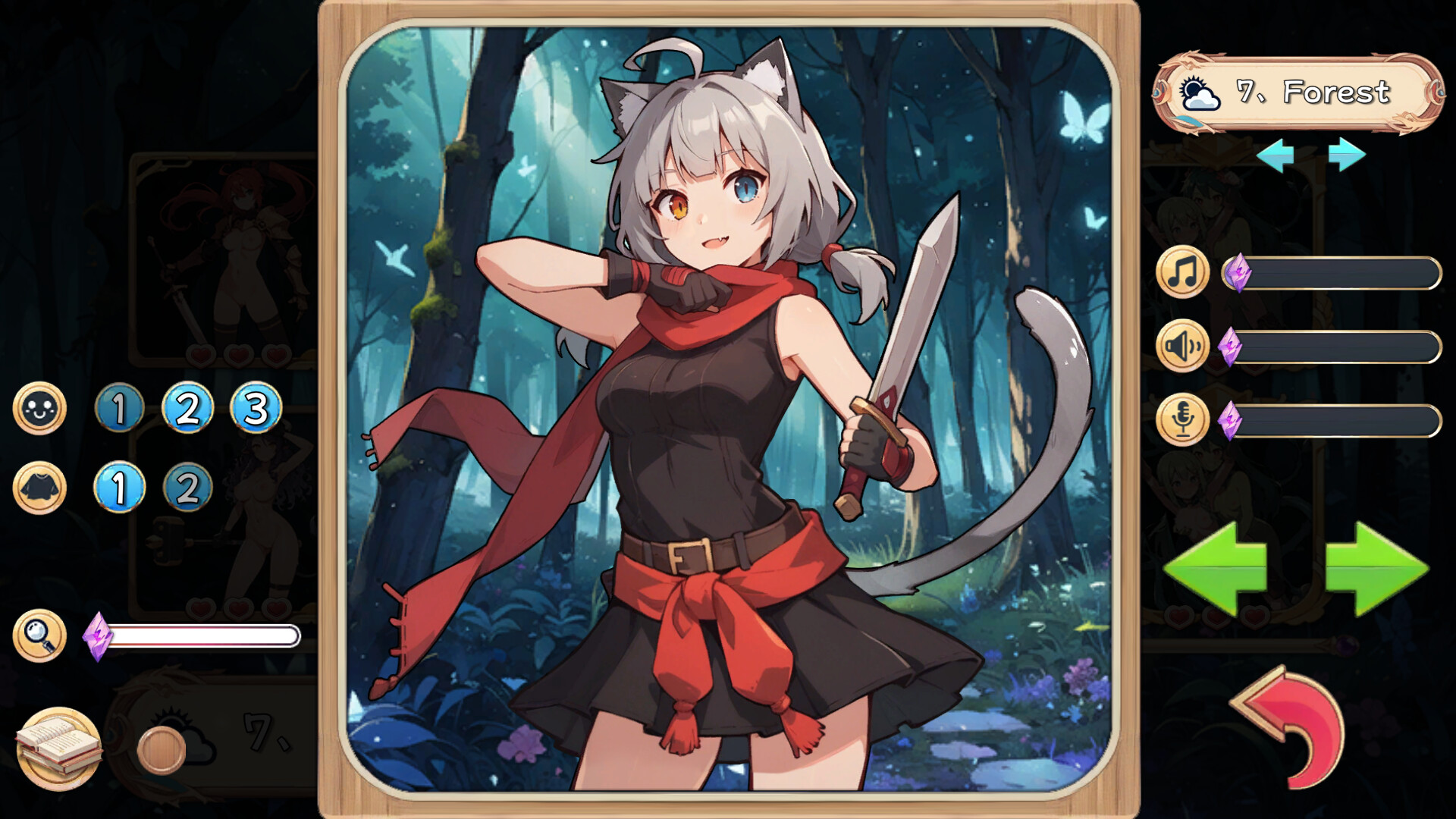 "There are various features in the gallery to help you better “enjoy” the CGs! In addition to the level content, the more heart points you have left when clearing a level, the more CGs you'll unlock! With over 80 CGs, 5 animated CGs, and many more variants, there's plenty for you to enjoy!"
