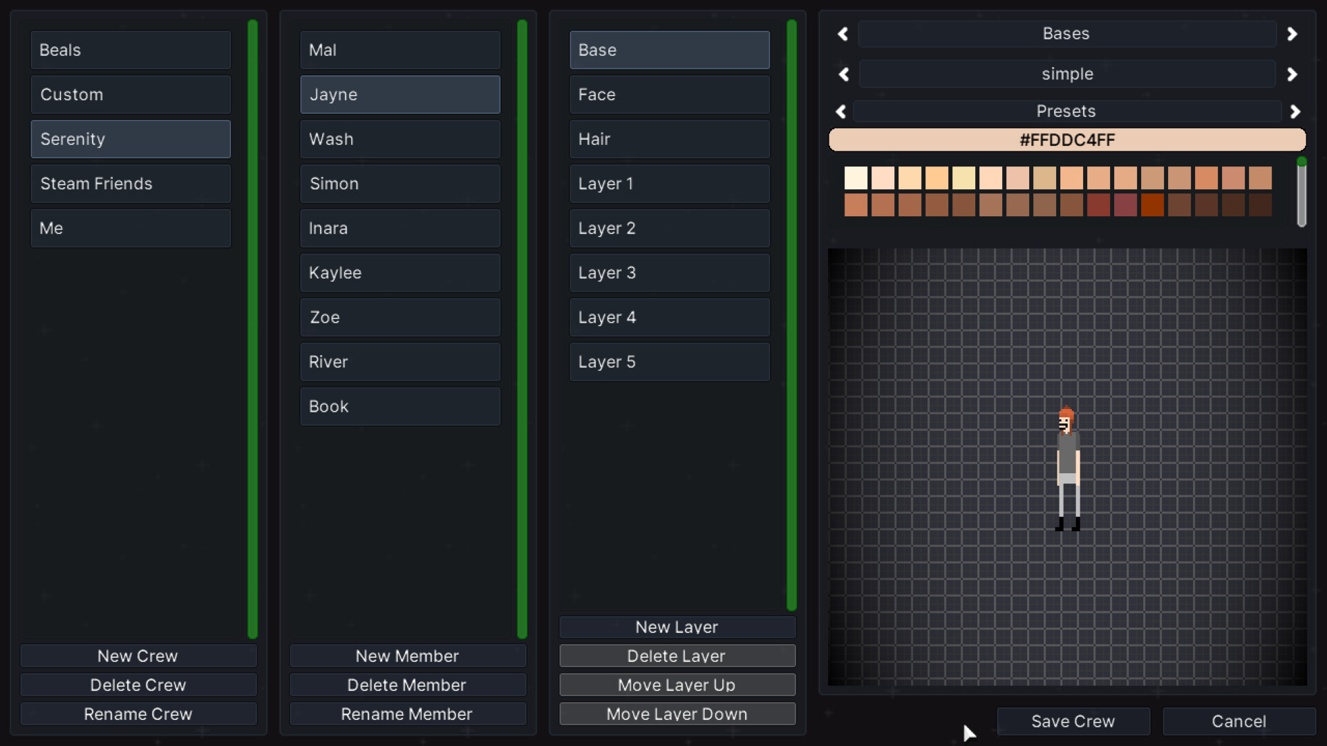 In the crew manifest, you can customize your friends' characters. Note that this will overwrite your friends' custom characters.