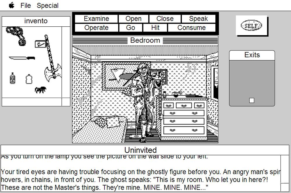 Relive the original MacVenture Series version of The Uninvited! Play through the Mac and Apple IIGS versions and survive the supernatural dangers of the haunted mansion.