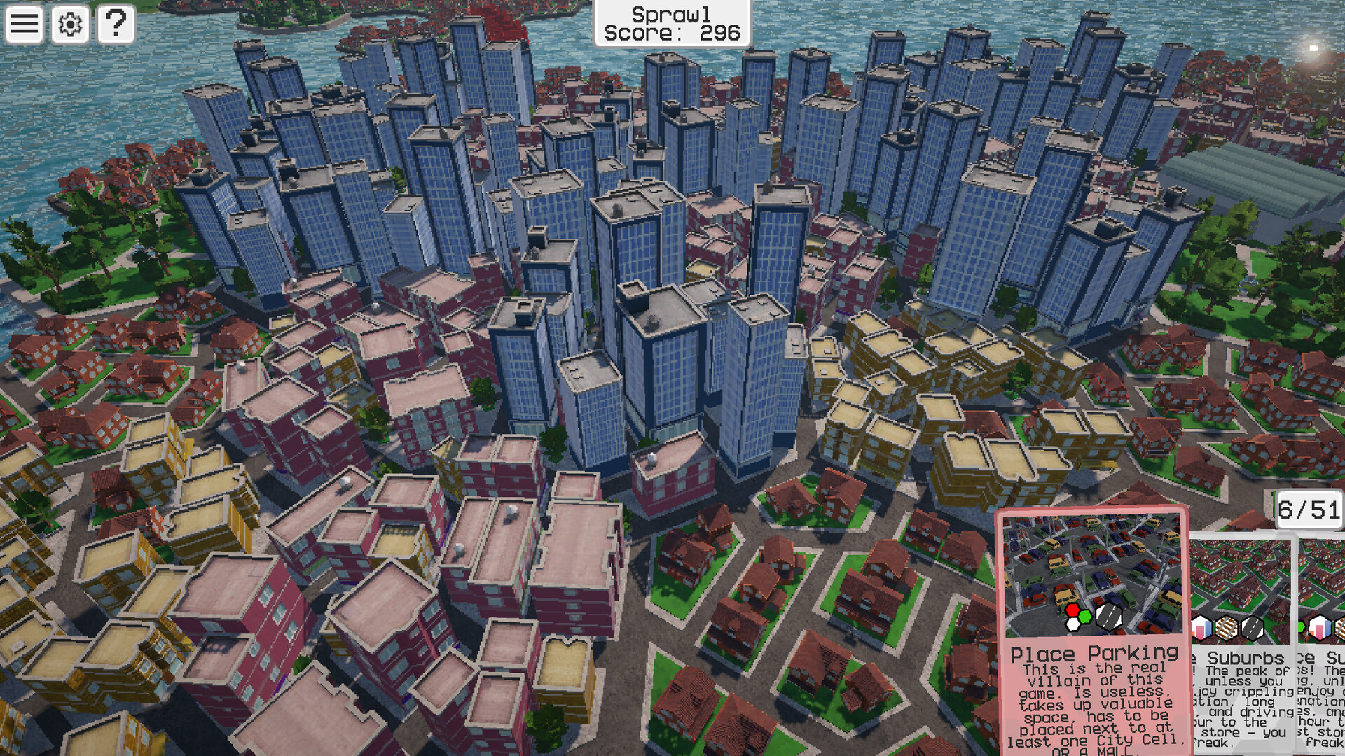 It SprawIs to casualowa gra w której starasz się stworzyć jak największe miasto na wiecznie rozszerzającej się hexagonalnej mapie - stawiaj budynki mieszkalne, przemysł i infrastrukturę taką jak linie kolejowe czy autostrady, aby utrzymać ekspansję tak długo, jak to możliwe!