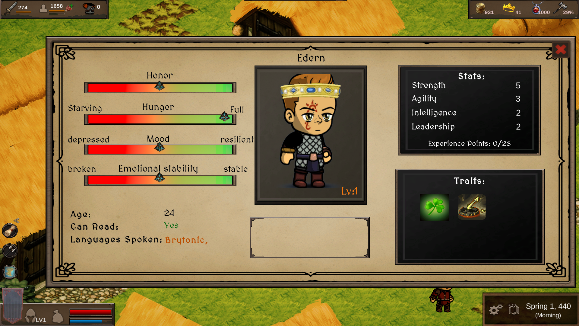 Keep your ruler in peak condition by managing their hunger, stamina, and happiness as they navigate the open world. Feast in grand halls, rest at inns, or find solace in quiet moments—but beware the consequences of neglect. Poor health or unhappiness can lead to negative personality traits, altering your ruler's behavior and decisions available.  That is... if you don't die from it!