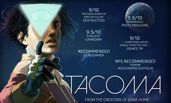 Tacoma is the next game from the creators of Gone Home, and carries on that tradition of detailed, immersive, and powerful storytelling, while pulling players deeper into the narrative than ever before.