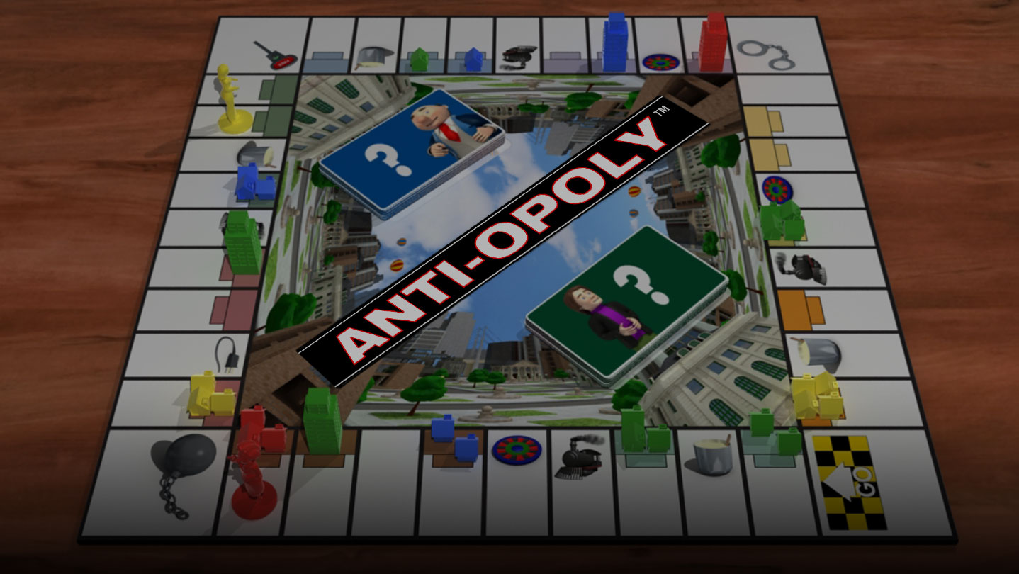 The property trading board game with a twist! Anti-Opoly is the property trading game that lets players choose free enterprise or monopoly, with different rules for each path.