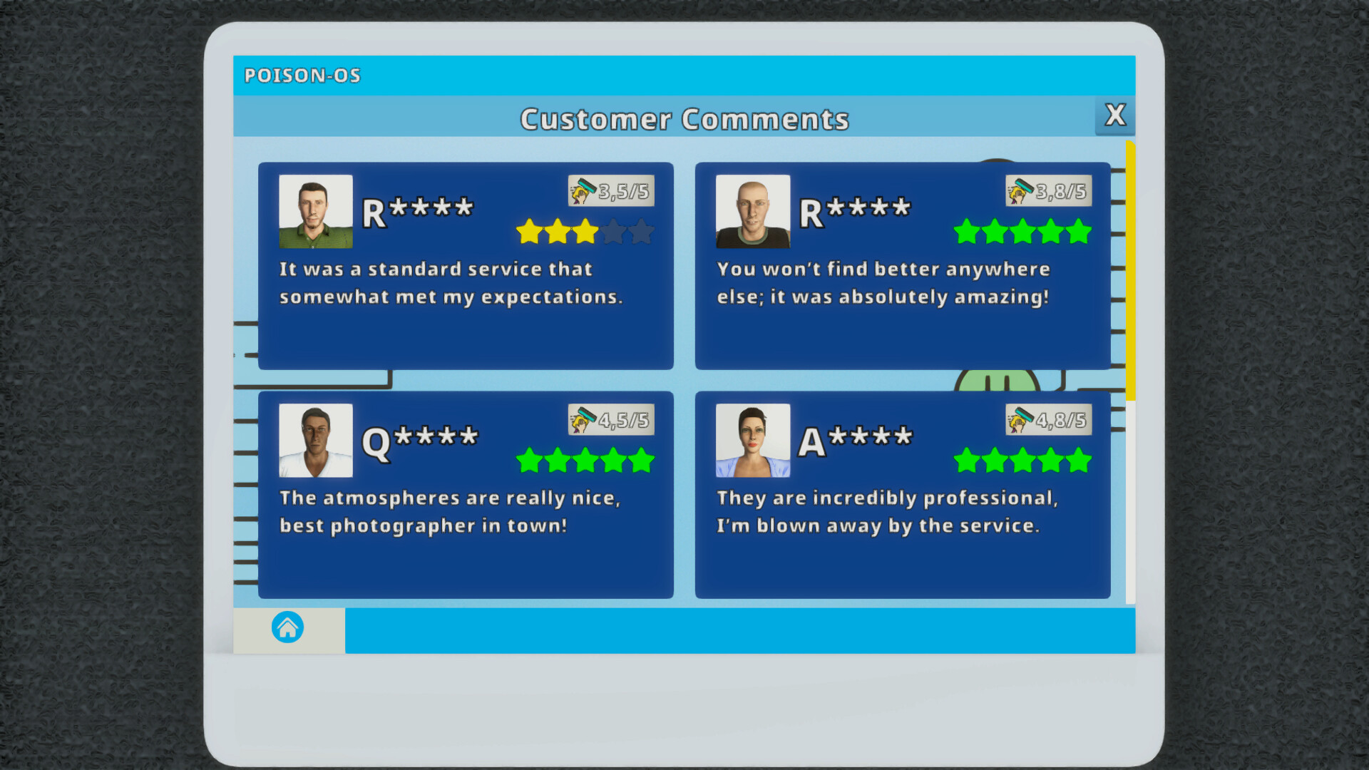 Passion for photography, creativity and strategy come together! Live your dream and write your own success story with Photographer's Life Simulator. Your goal is simple: Build the best photo studio and make your name in history!