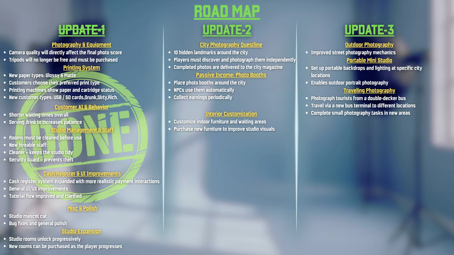 Passion for photography, creativity and strategy come together! Live your dream and write your own success story with Photographer's Life Simulator. Your goal is simple: Build the best photo studio and make your name in history!