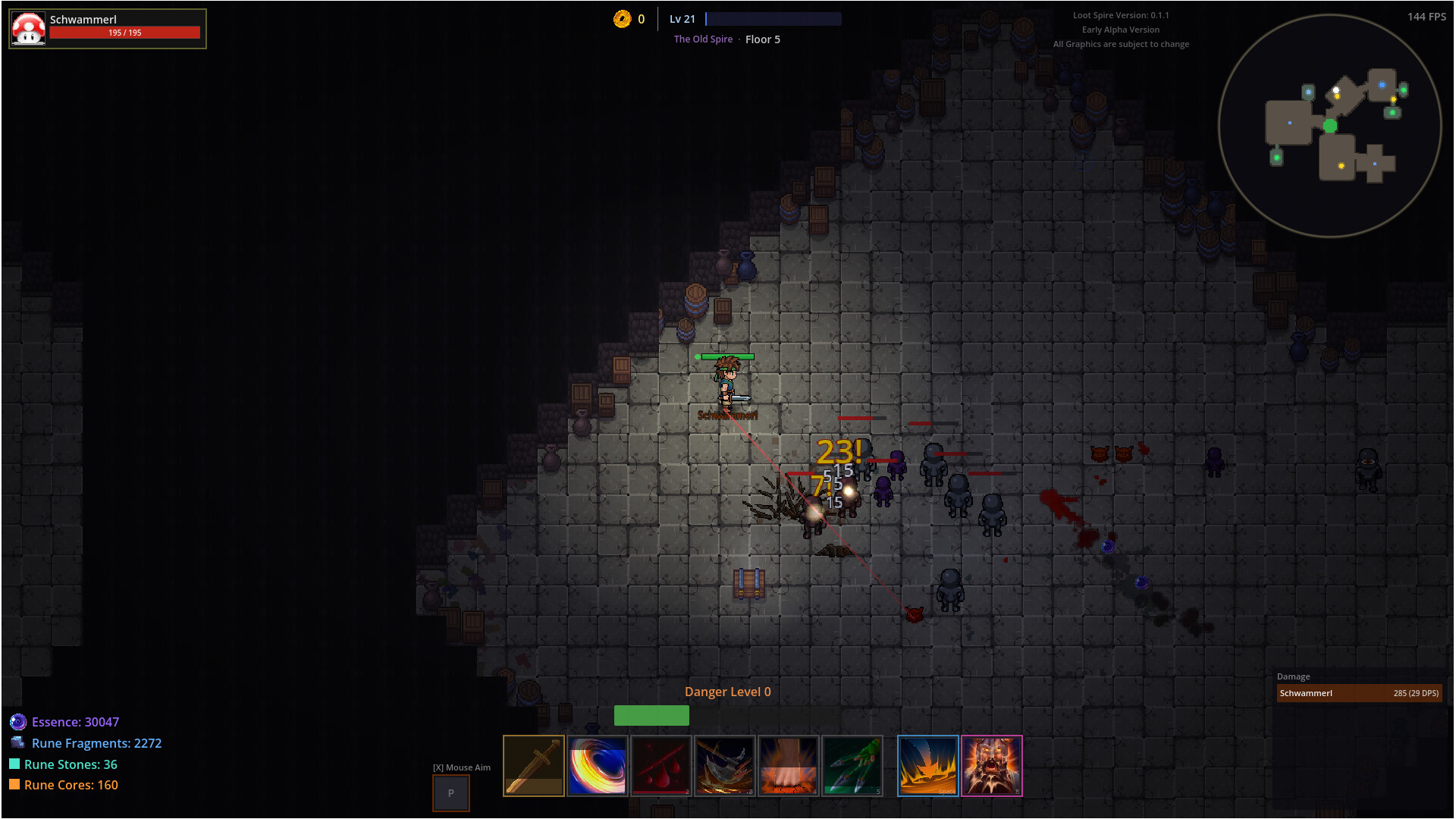 “The core gameplay loop is fully playable in 1–4 player co-op. The game includes the base classes each with unique abilities and passives, procedurally generated dungeon floors, a full equipment and loot system with tag-based modifiers that change how abilities behave, boss fights, meta-progression between runs, and a leveling system with choices between floors. Multiplayer works via Steam networking.”