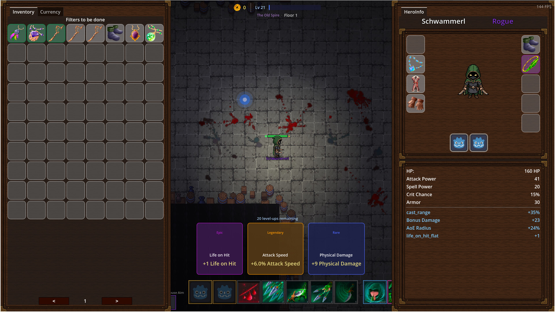 Co-op roguelite dungeon crawler for 1–4 players. Pick a class, choose abilities, gear up, and fight through a procedural spire that gets harder the higher you go. Gear and Hero Level reset every run, but Unlockables persist.