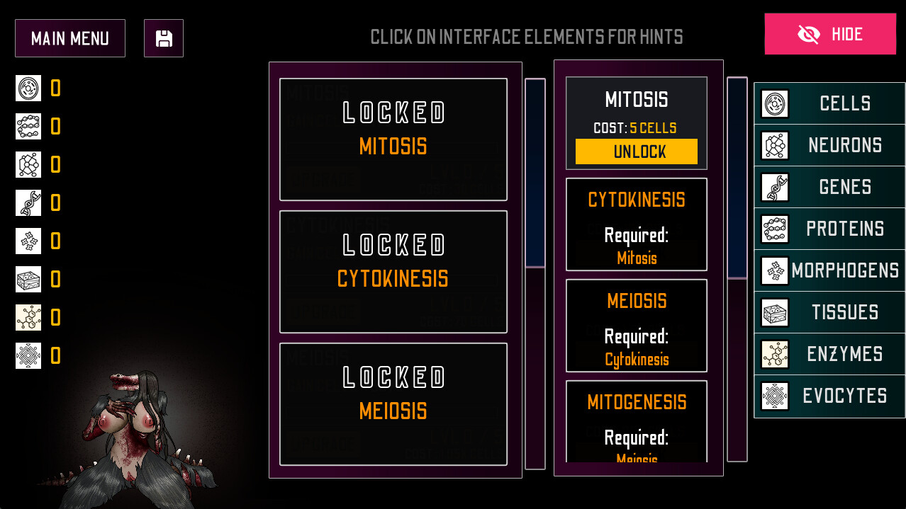 • Genes: These are needed to increase the amount of cells you gain from clicking. The more genes you have, the more cells you gain.