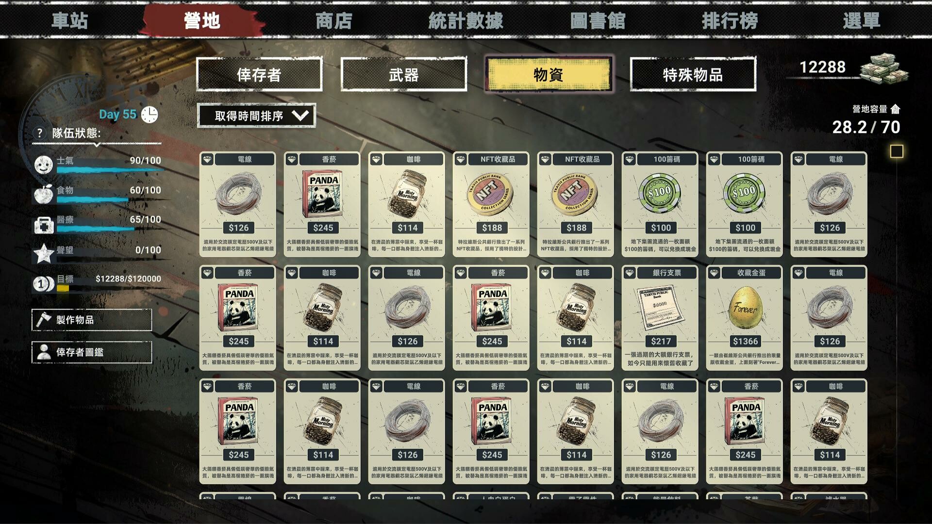 • 營地建設:利用搜刮而來的物資/戰利品在營地中建造設施,提高倖存機率。(小心黑市商人!)