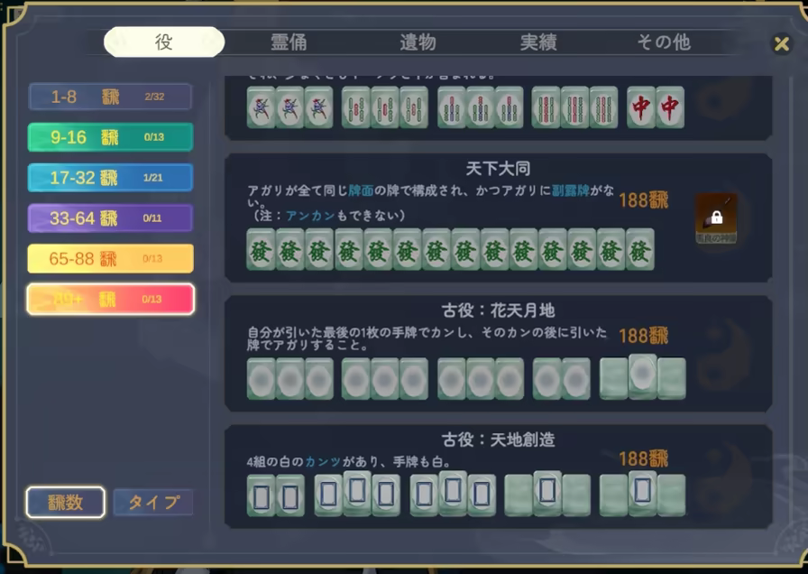 • 35種類の供物——牌を変化させ、山牌を自在に操る特別な能力、さらには"ツモ運"まで強化可能!